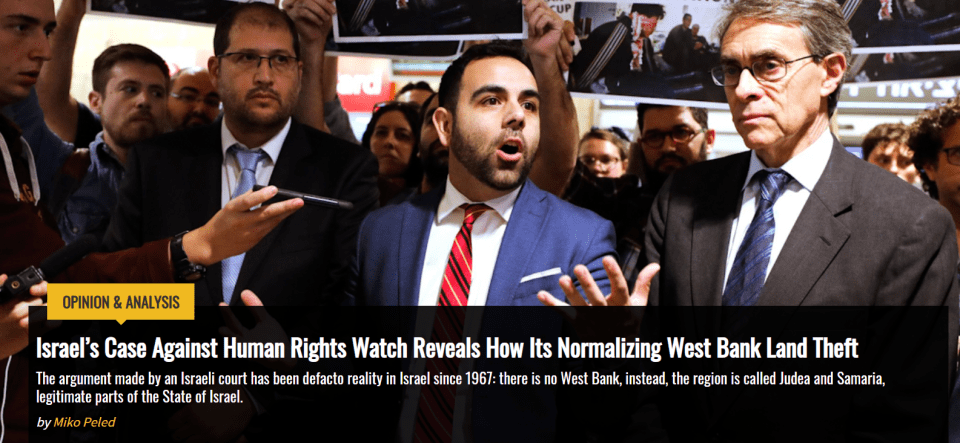 Israel’s Case Against Human Rights Watch Reveals How Its Normalizing West Bank Land Theft