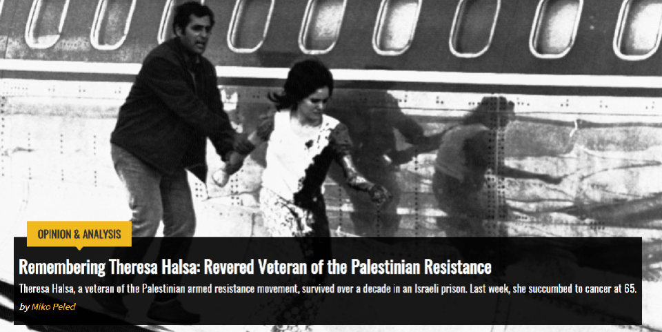 Theresa Halsa, a veteran of the Palestinian armed resistance movement, survived over a decade in an Israeli prison. Last week, she succumbed to cancer at 65.