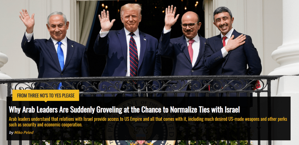 Arab leaders understand that relations with Israel provide access to US Empire and all that comes with it, including much desired US-made weapons and other perks such as security and economic cooperation.