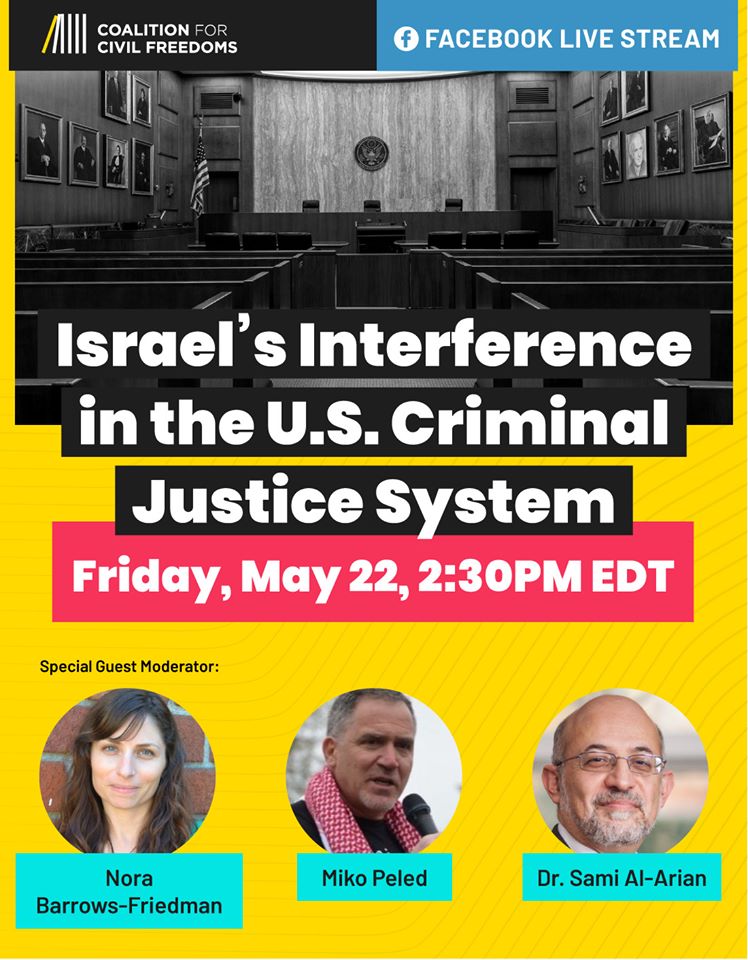 While many are familiar with Israel and its lobby’s influence on the American political establishment, a lesser known area of influence it enjoys is in U.S. courtrooms. This webinar will trace the targeting of Palestinian American activists and community members from 1988 with the LA 8 case to the post-9/11 Al-Arian, Al-Ashqar, and the Holy Land Five cases, among others. Join Miko Peled and Dr. Sami Al-Arian in conversation with special guest moderator Nora Barrows-Friedman on Israel’s destructive interference in the American justice system.