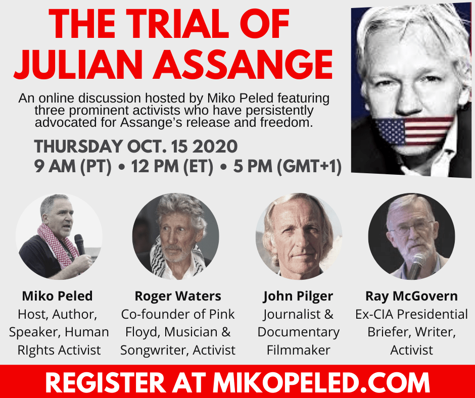 In this upcoming online event, author and activist, Miko Peled, speaks with three prominent activists who have persistently advocated for Assange’s release and freedom: Roger Waters, John Pilger. and Ray McGovern.
