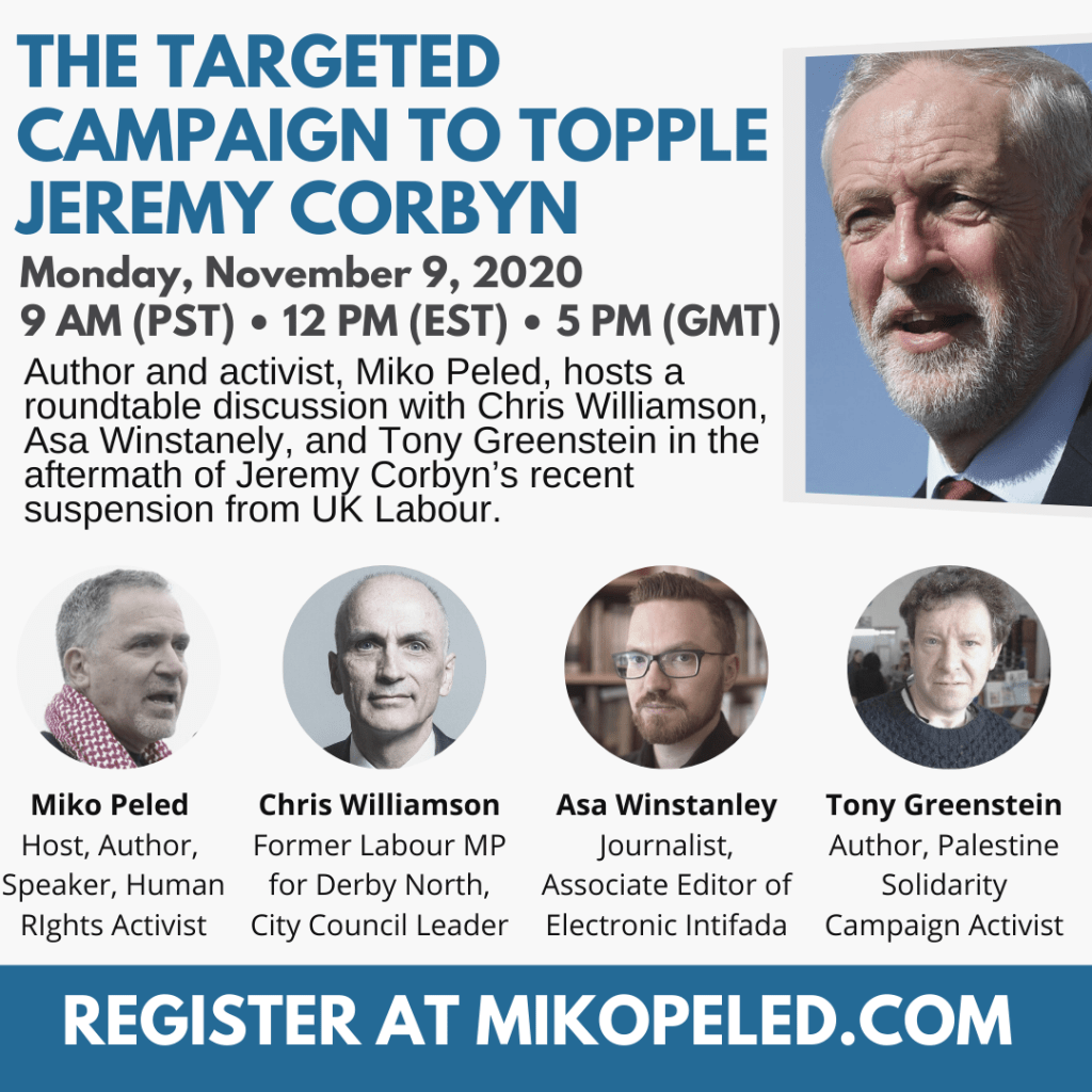 Author and activist, Miko Peled, hosts a roundtable discussion with Chris Williamson, Asa Winstanely, and Tony Greenstein in the aftermath of Jeremy Corbyn’s suspension from UK Labour.