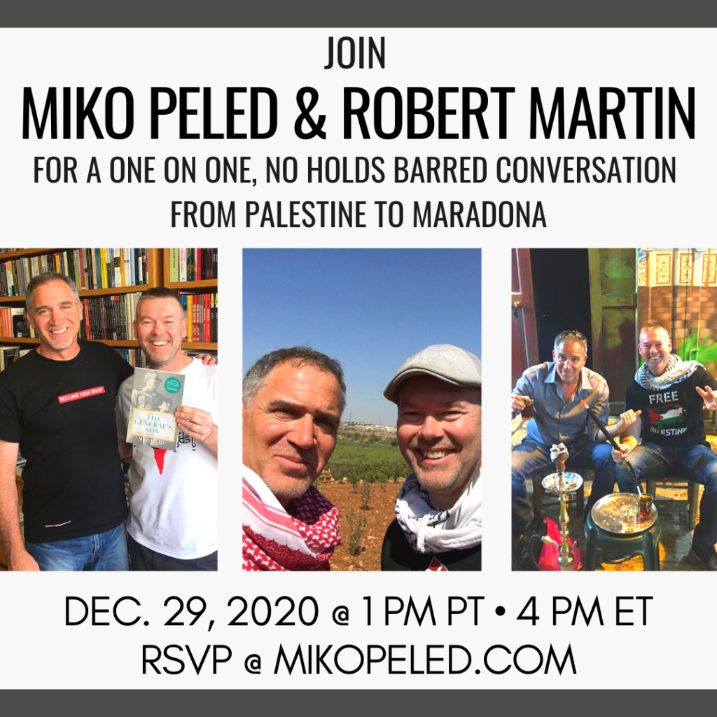Author and activist, Miko Peled, hosts a discussion with longtime friend and Australian activist, Robert Martin. From Palestine to Maradona: no topic will go untouched and no stone left unturned. An audience Q&A will follow the conversation.